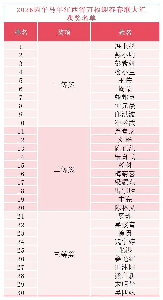 热烈祝贺南昌县工人文化宫书法班学员,在2026 丙午马年江西省 “万福迎春” 春联大汇中斩获佳绩、荣耀上榜!