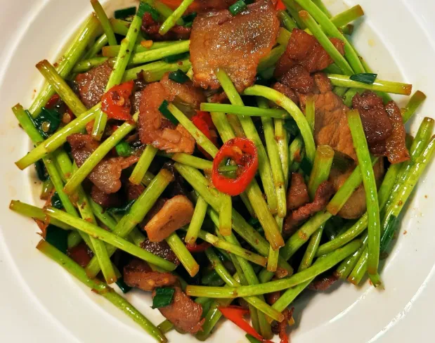 晚上可以简单点,点一盘藜蒿炒腊肉,再加个时蔬。藜蒿带点清苦,腊肉咸香,嚼几下就对上了,风一吹,胃就踏实。