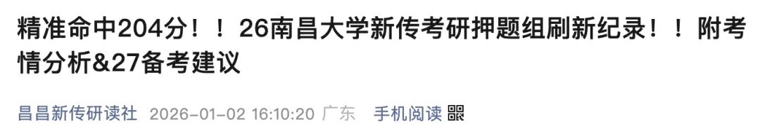 从23级到26级,昌昌新传研读社模考预测系列不断升级,教研团队共打磨近30套试卷(后面会展示),每一年都有很高的题目压中率!科学命题与优质的服务帮助不少小伙伴在冲刺阶段实现了质变!