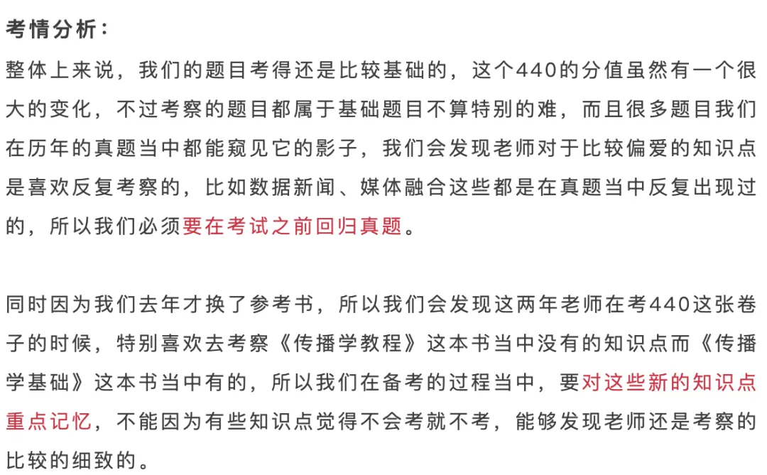 我们推出的南大新传押题冲刺模拟考一共有3次,分别在10月中旬、11月中旬和12月初展开三次全真模考。全学科、全题型覆盖,能保证每一位备考南大新传的考研崽在有间隔复盘时间的情况下进行充分训练和查漏补缺。