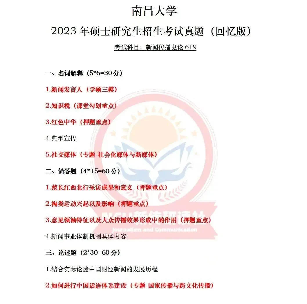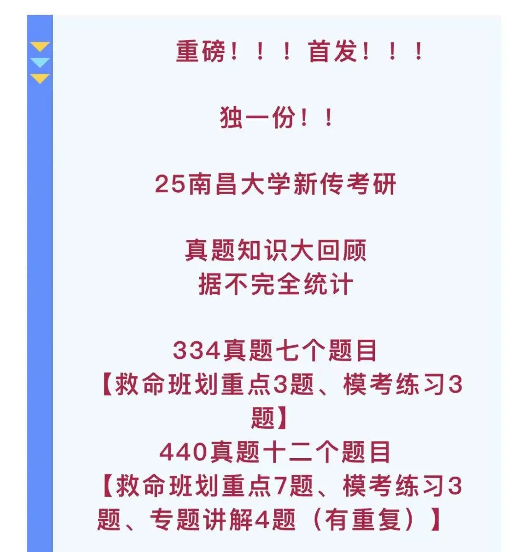 2020-2026年共计30多套学硕专硕真题帮助宝子们熟悉南昌大学大学新传考研真题风格进而高效复习!