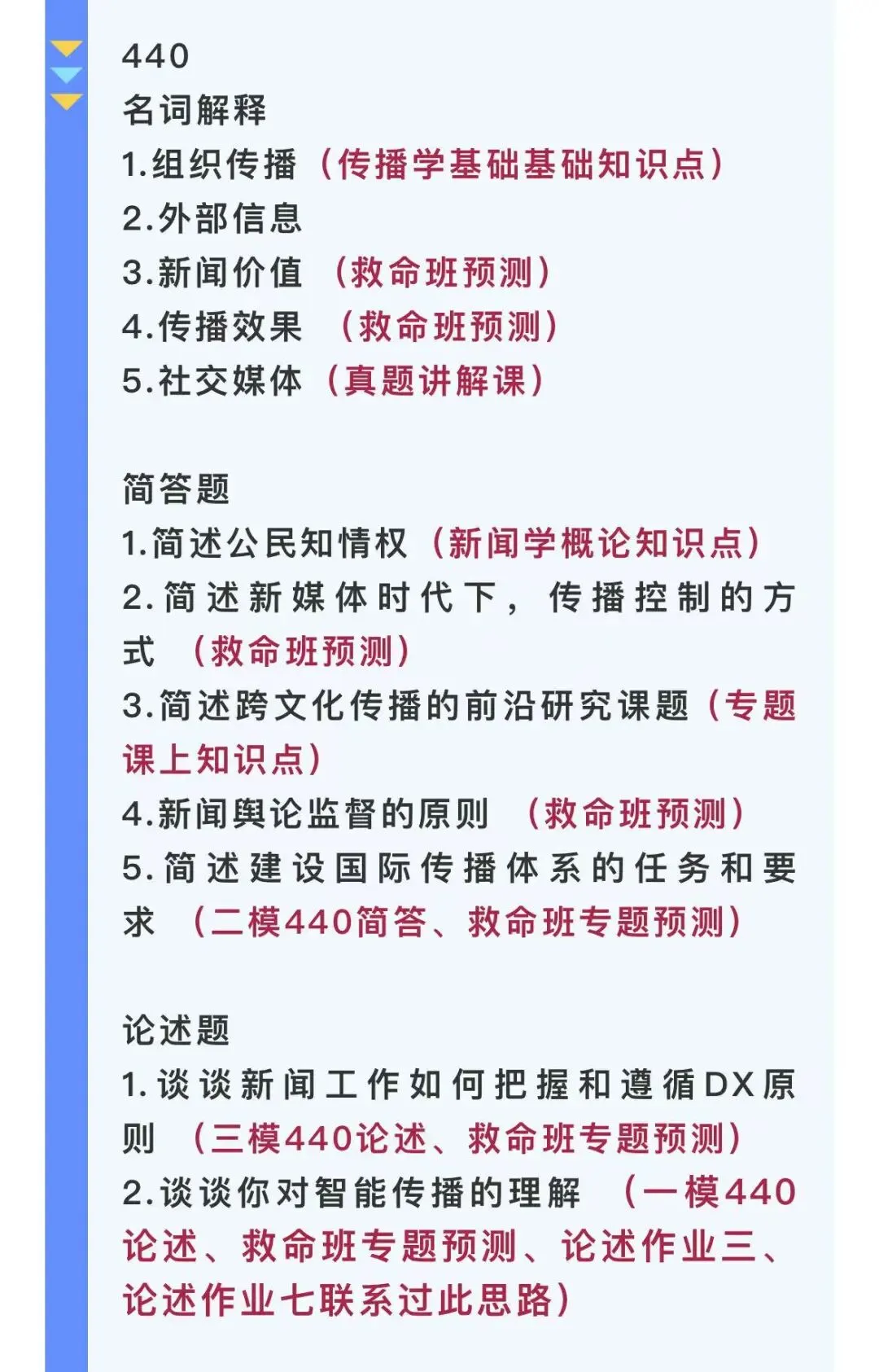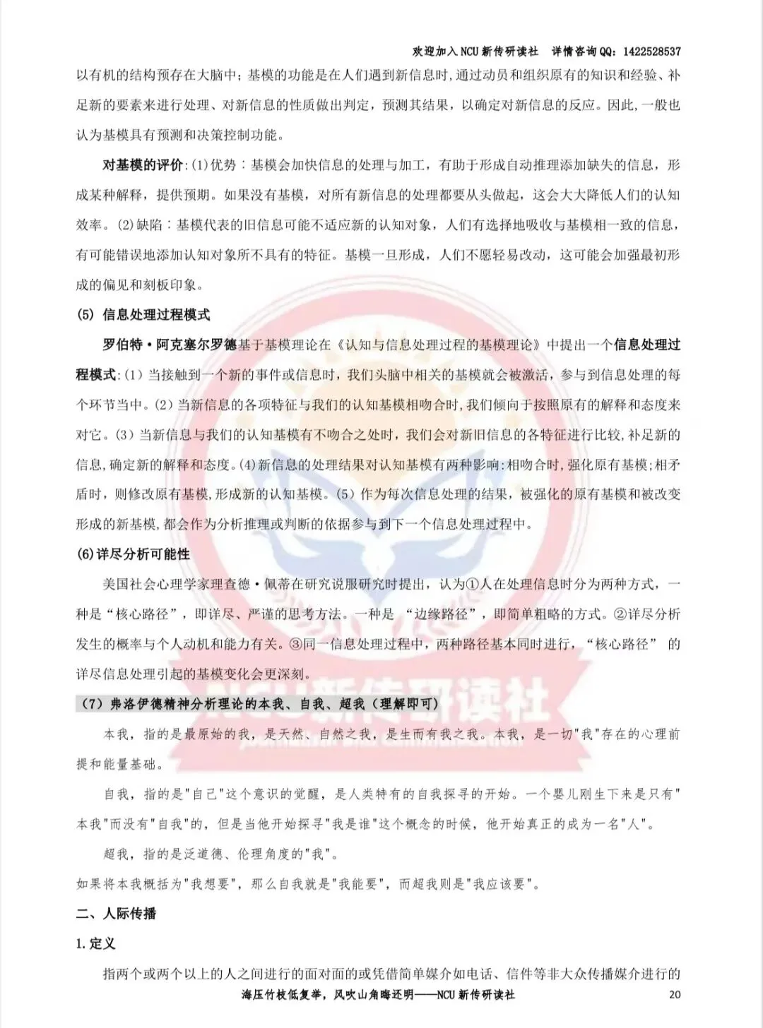 1.涵盖南昌大学新传考研(专硕/学硕)参考书(或大纲)的基本理论知识点,复习过程中不再担心遗漏知识点,早期协助理解书本逻辑,后期集中背诵;