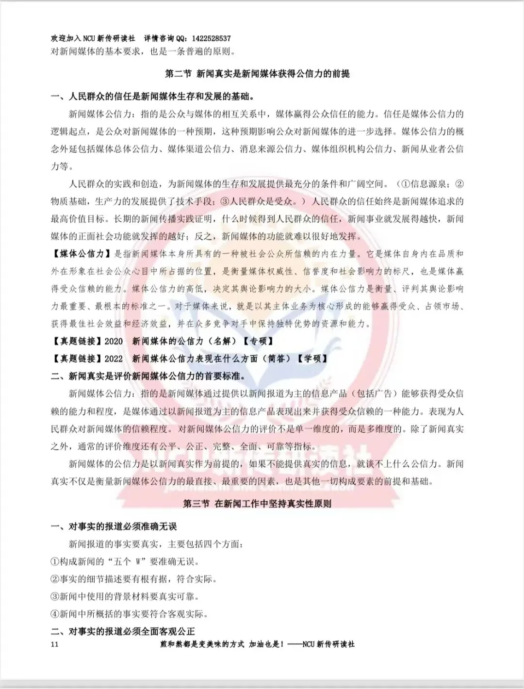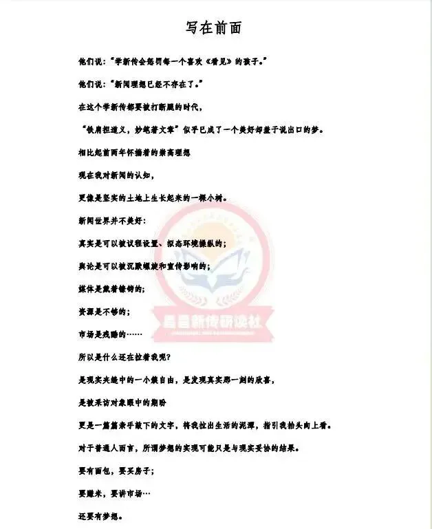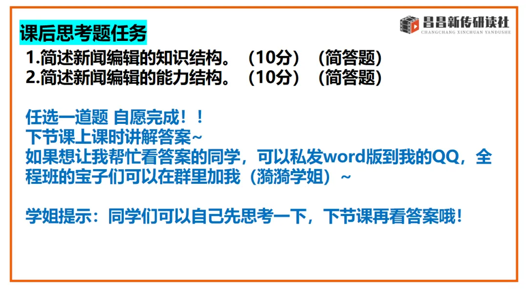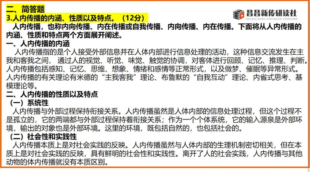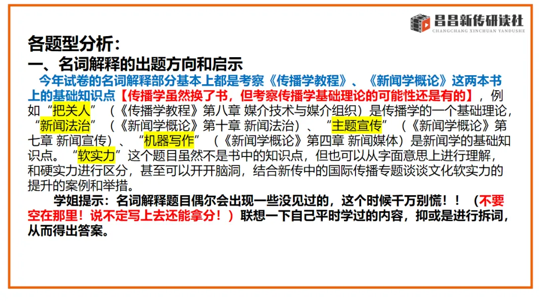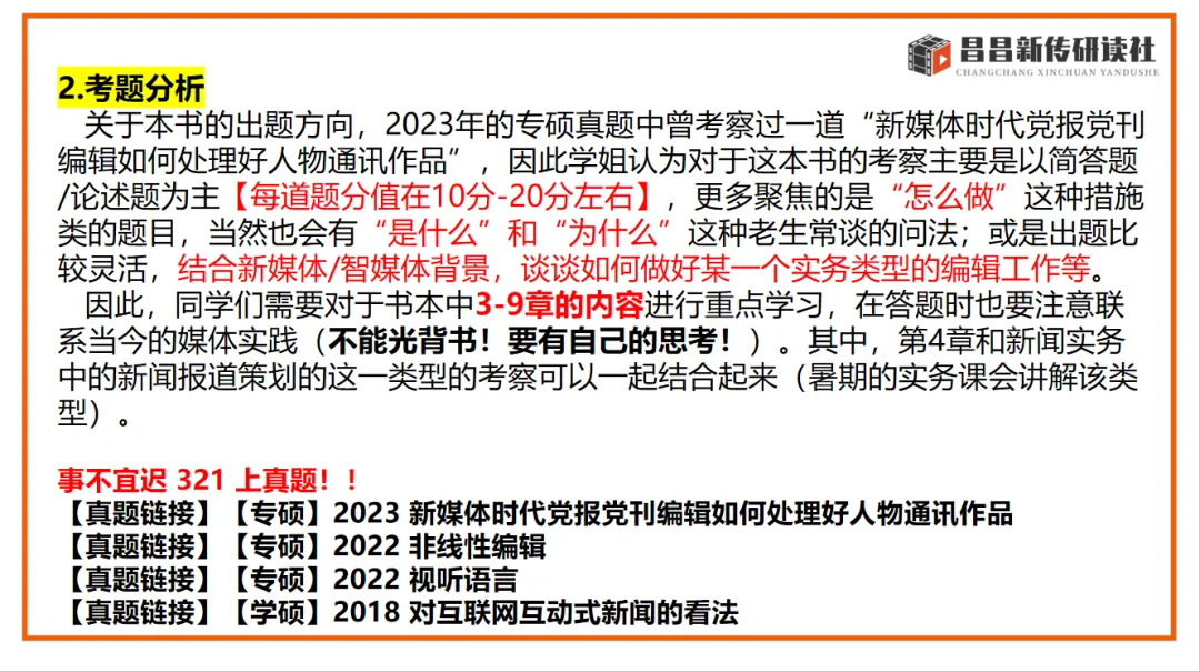 昌昌新传研读社连续四年通过全真模拟,考前预测,精准命题!