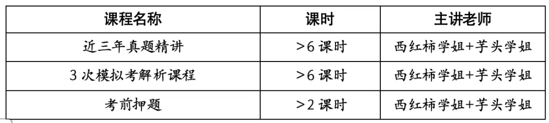 模考作为最后的压轴课程至关重要,学长学姐们会根据学界热点和院校动态判断今年大概率考察的知识点,三套模拟卷由研读社所有学长学姐们共同商讨,过去四年我们的真题模拟卷都反复打磨、预测真题实力说话!