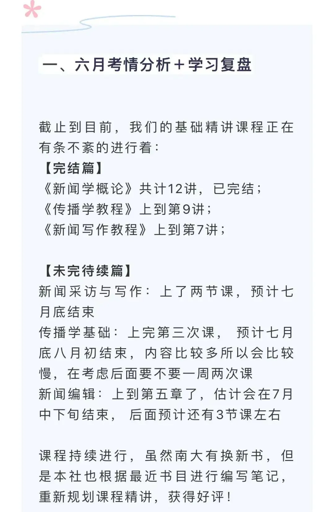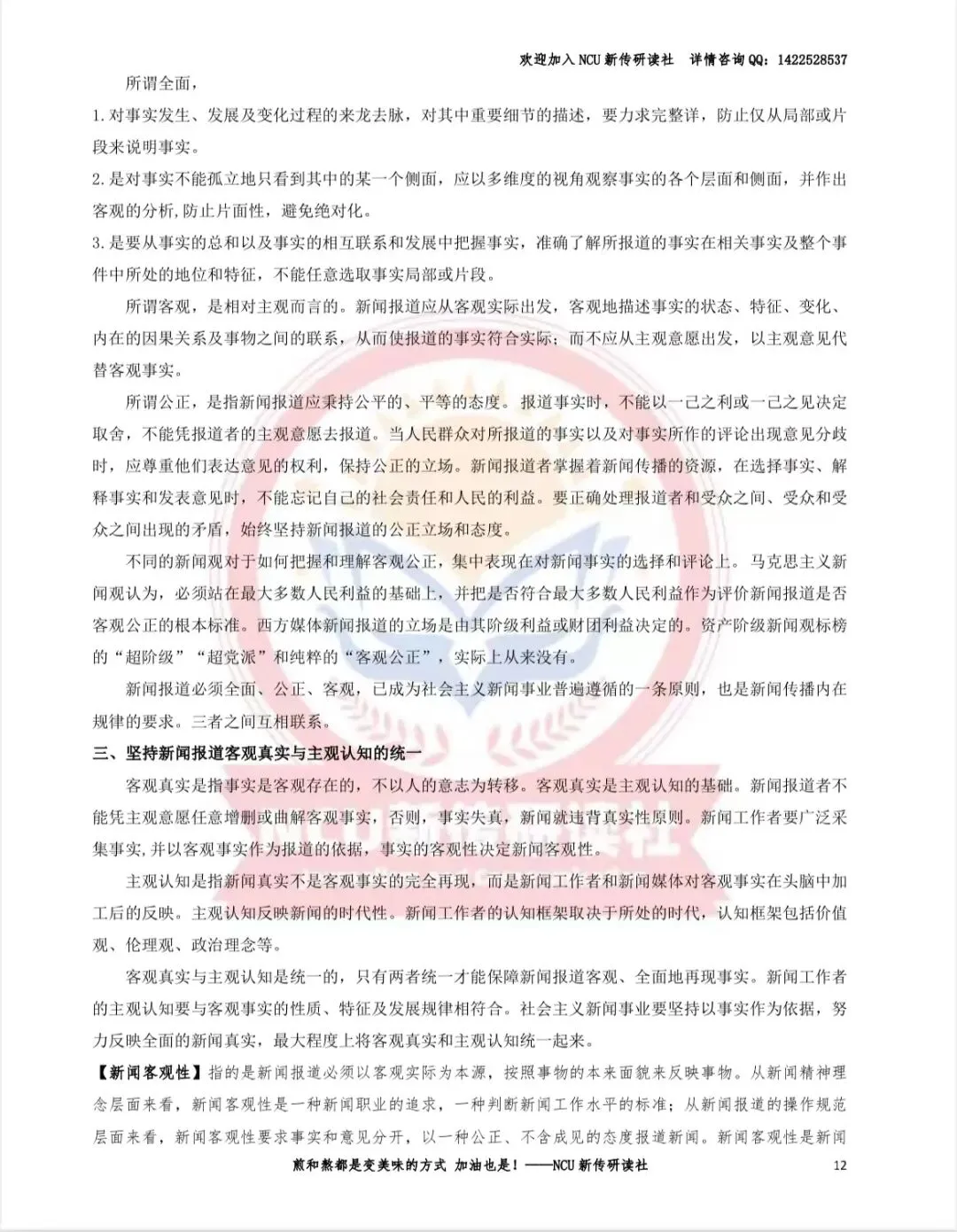 若9月份考纲出来后参考书有变化,研读社团队会快速为学员整理新增书本笔记,从容应对变化。昌昌新传研读社独家高分资料,精准垂直南昌大学新传考研,每年更新,好评如潮。