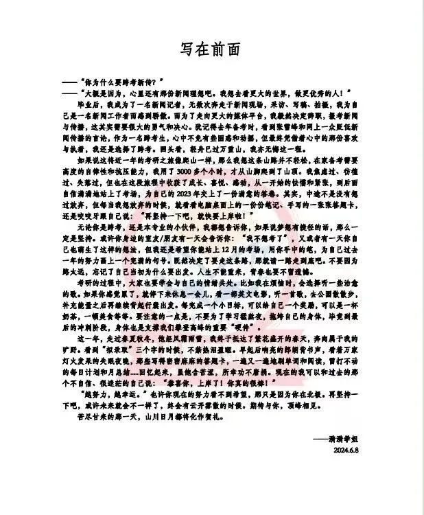 开篇的学长学姐寄语不仅给大家梳理了参考书的备考重点,也为大家在枯燥无味的备考生活里提供了精神鼓励,当你疲惫之时,可以翻阅看看哦~
