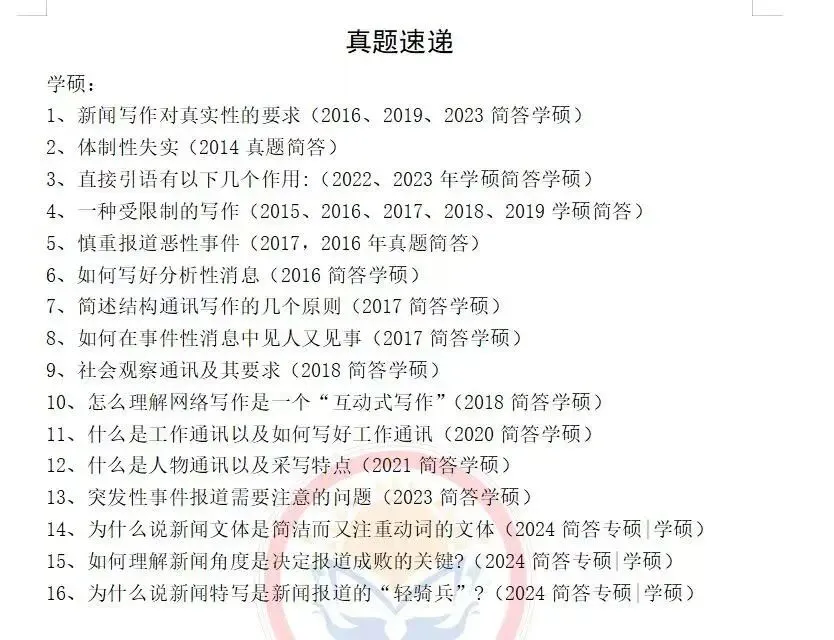 本笔记结合近七年真题走向,涵盖新闻、传播、广告三个学科,每个大专题下面分类各个小专题,共计60+专题,均是新传考研的经典、热点专题,完全覆盖考试。