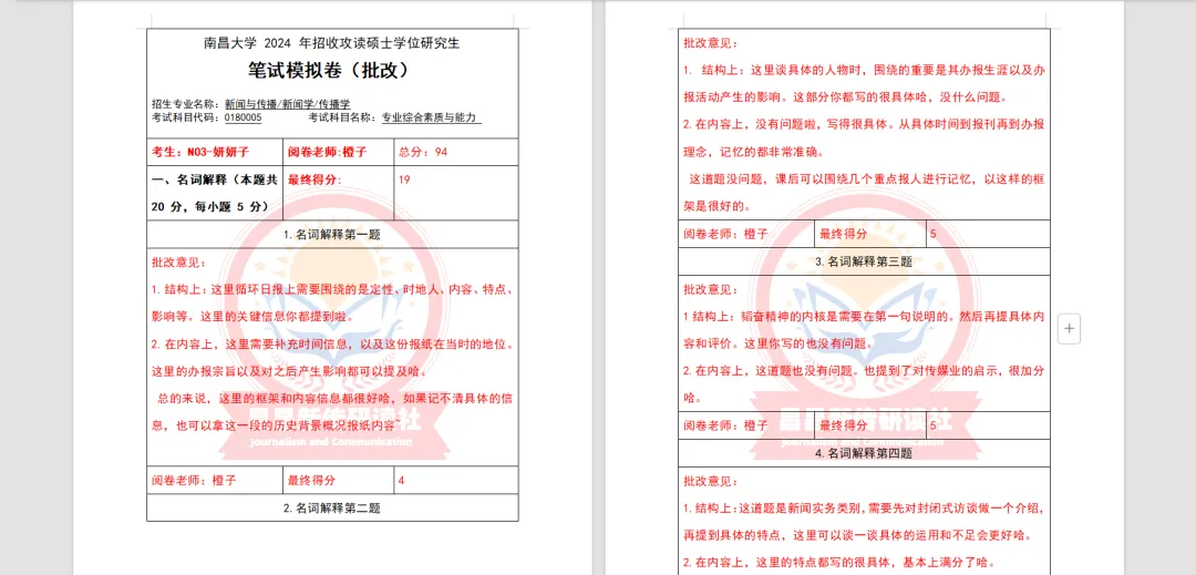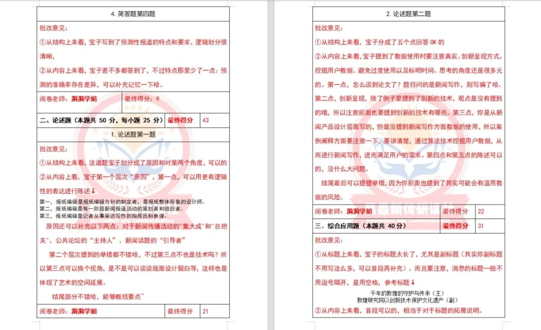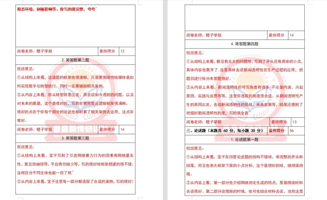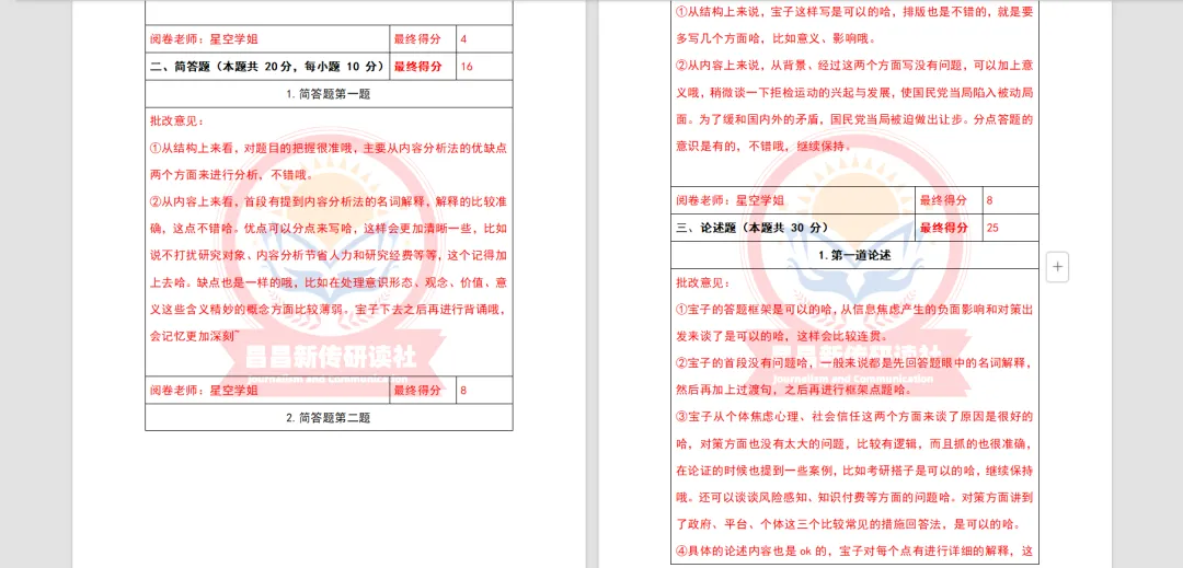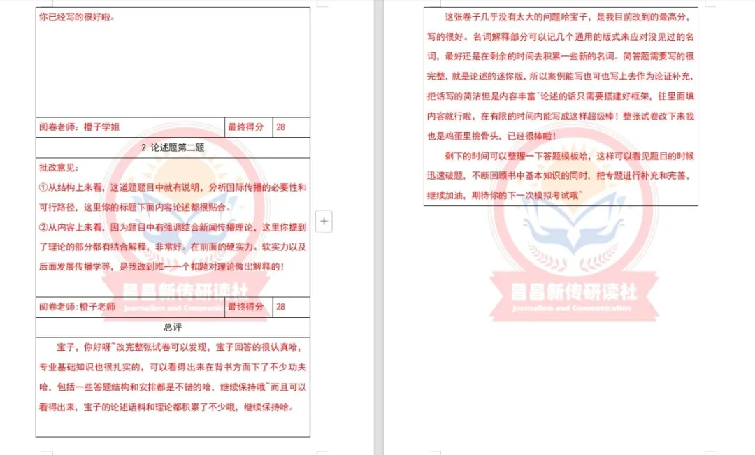 此外,研读社团队学长学姐们批改认真仔细,准确定位问题所在,让学员们在全真模拟中得到提升,找到问题,从而有效提高复习效率。