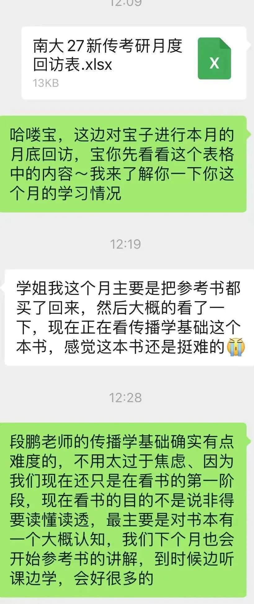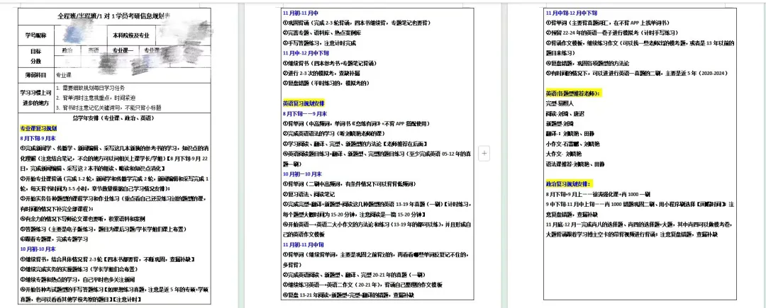 备考初期,学长学姐们对接到每一位学员,电话沟通了解基本学习情况,给出整年、每个月的具体学习规划建议。