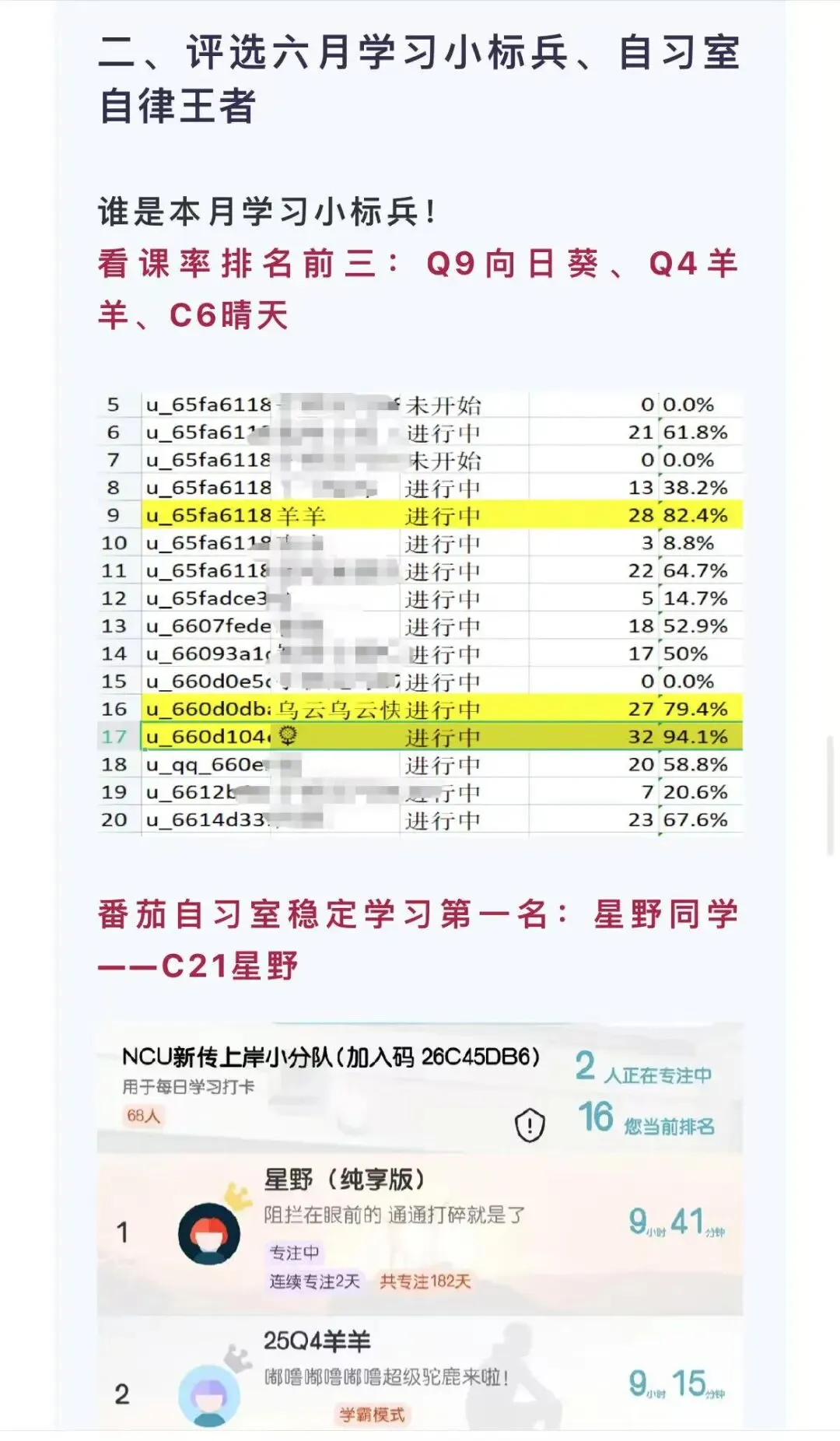 其次27考研还增加每日督学表,每日公布当天在线学习人数及时长,若不满足要要求将会被清除出自习室,帮你进入高效学习状态。