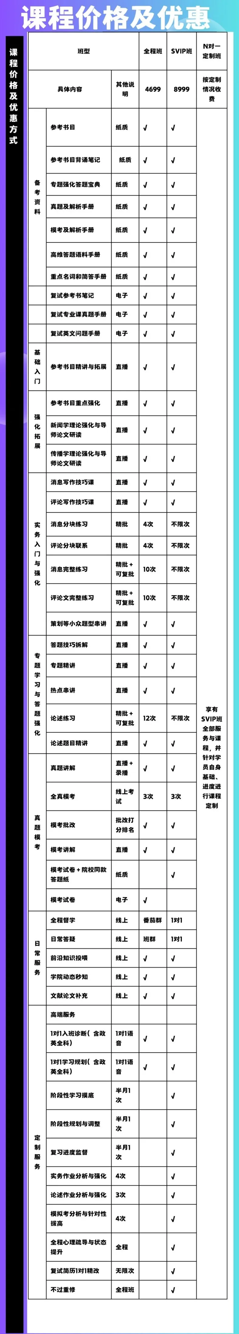 首先,咱们的全程班课程覆盖了一整年的学习计划,从今年三月份一直到今年初试结束,会一直陪伴着你直到考研上岸,中途不需要支付额外费用哦