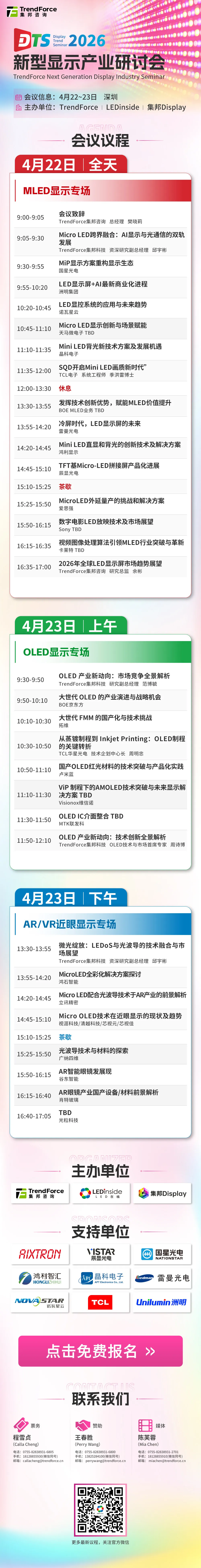 ,共同解码MLED、OLED发展。4月22-23日深圳见!