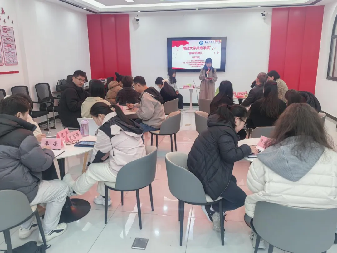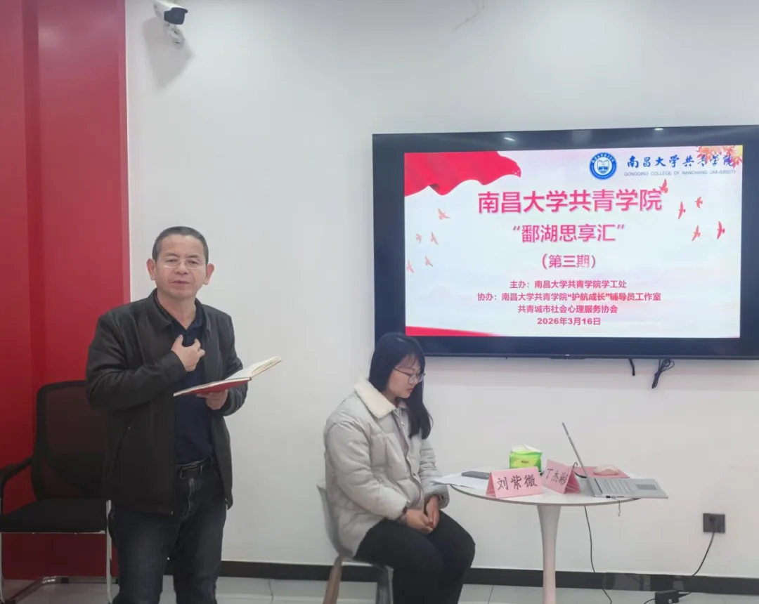 为进一步提升辅导员队伍专业素养与危机处置能力,搭建常态化育人交流平台,3月16日上午,南昌大学共青学院第三期“鄱湖思享汇”在一站式党建会议室如期举行。活动由学工处主办,南昌大学共青学院“护航成长”辅导员工作室与共青城市心理协会共同承办。学工督导员艾淑平老师、共青城市心理协会秘书长肖楠及各二级学院辅导员代表出席活动。活动由学院“护航成长”辅导员工作室负责人丁杰彬主持。
