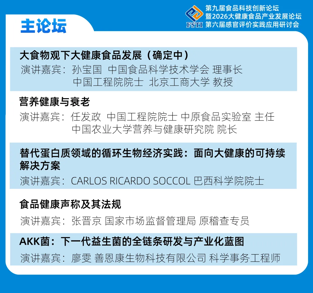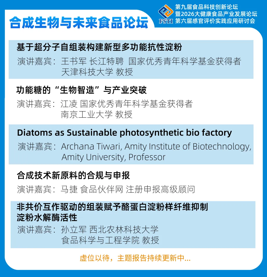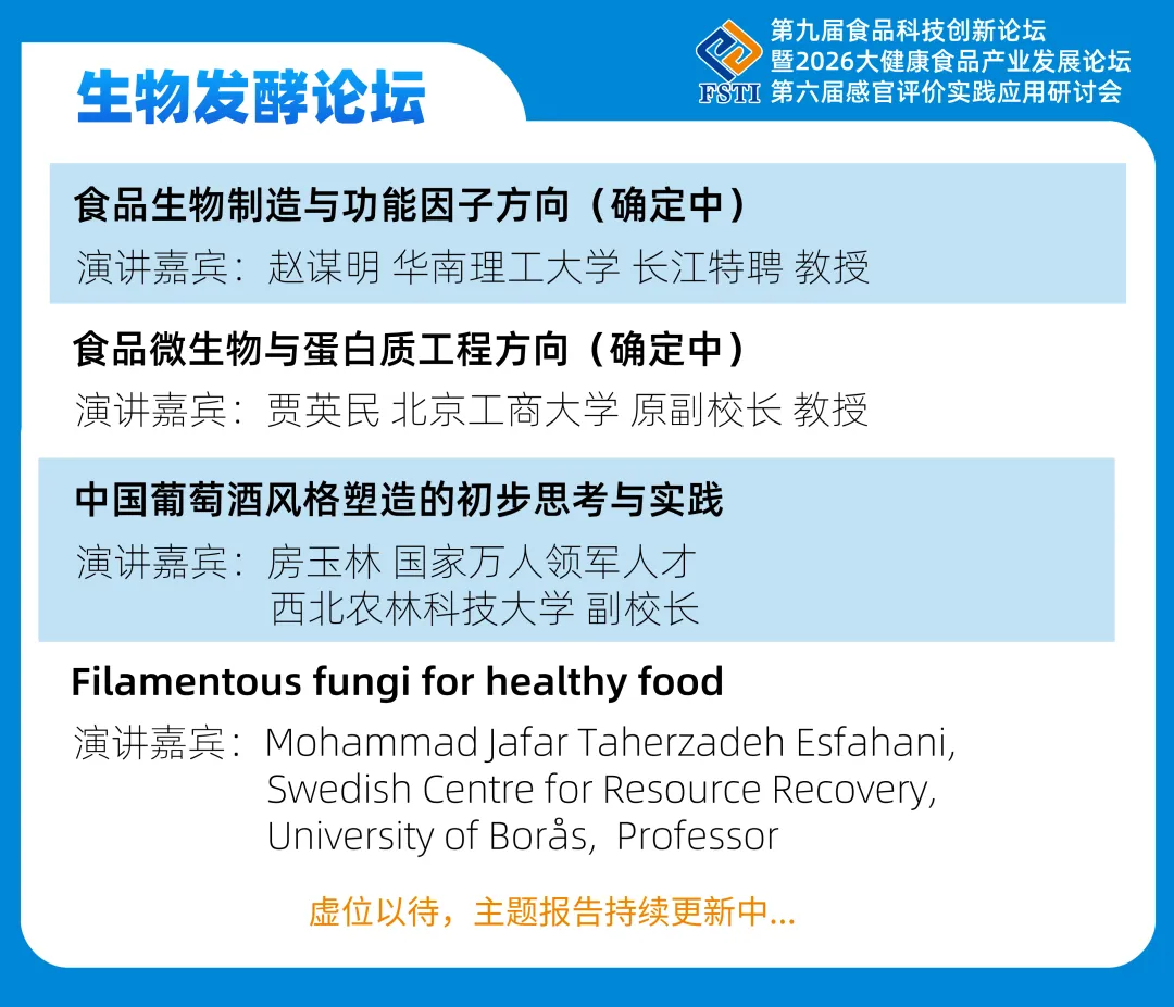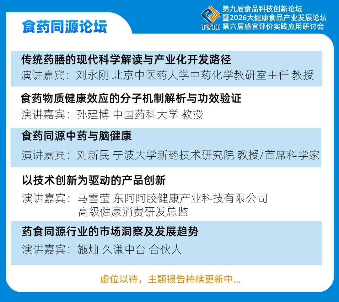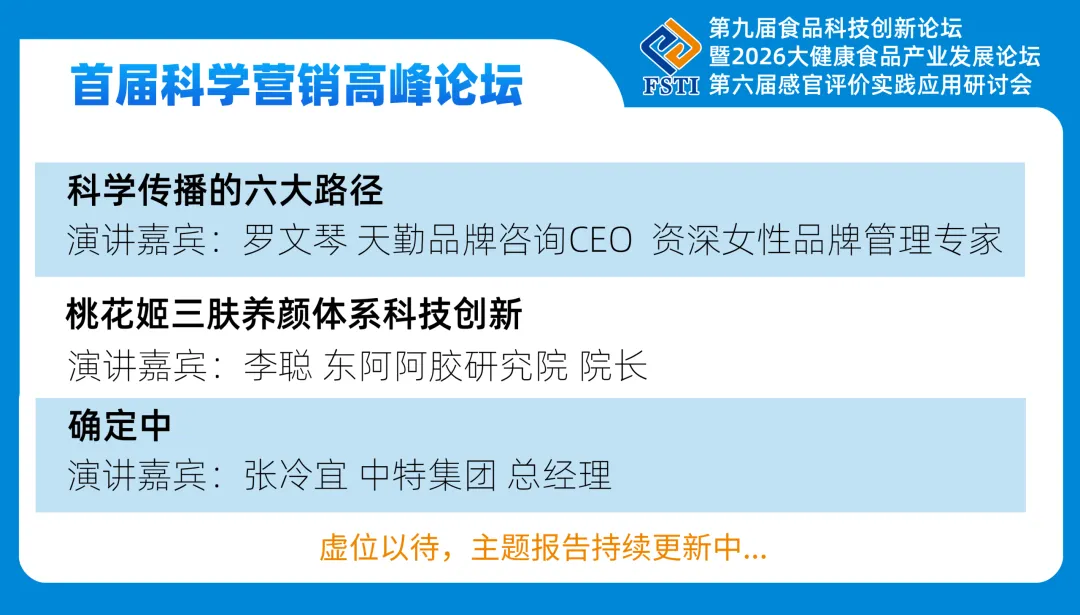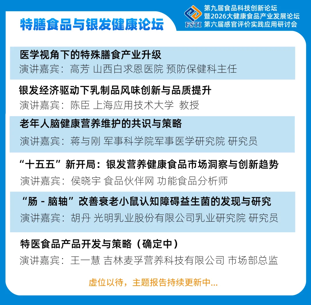 围绕“科学创新、技术落地”的核心主题,多位行业权威专家将展开深度研讨,剖析技术痛点、明晰转化路径,助力参会者抢抓2026食品科技产业发展新机遇!