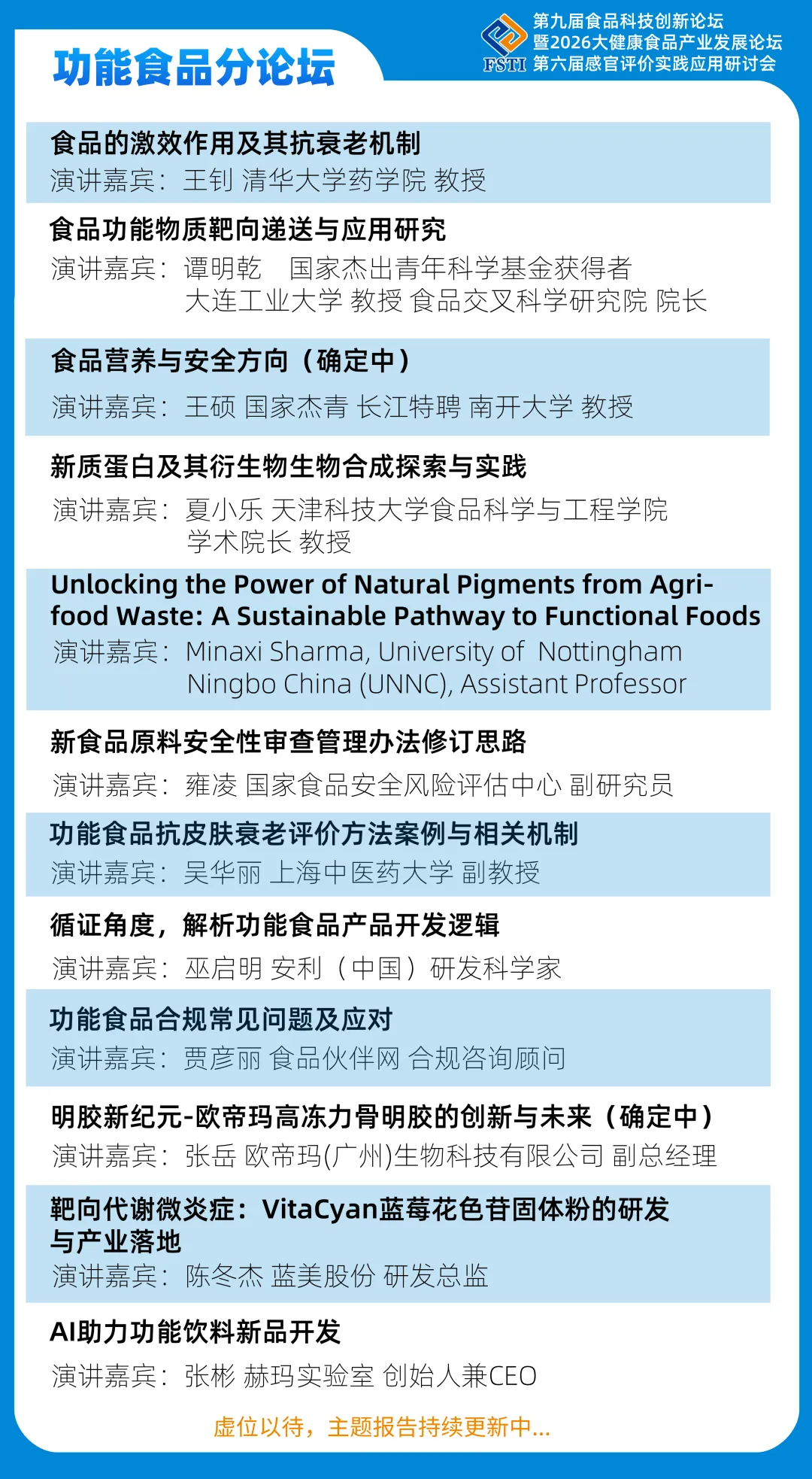 2025食品科技创新论坛演讲嘉宾(排名不分先后)
