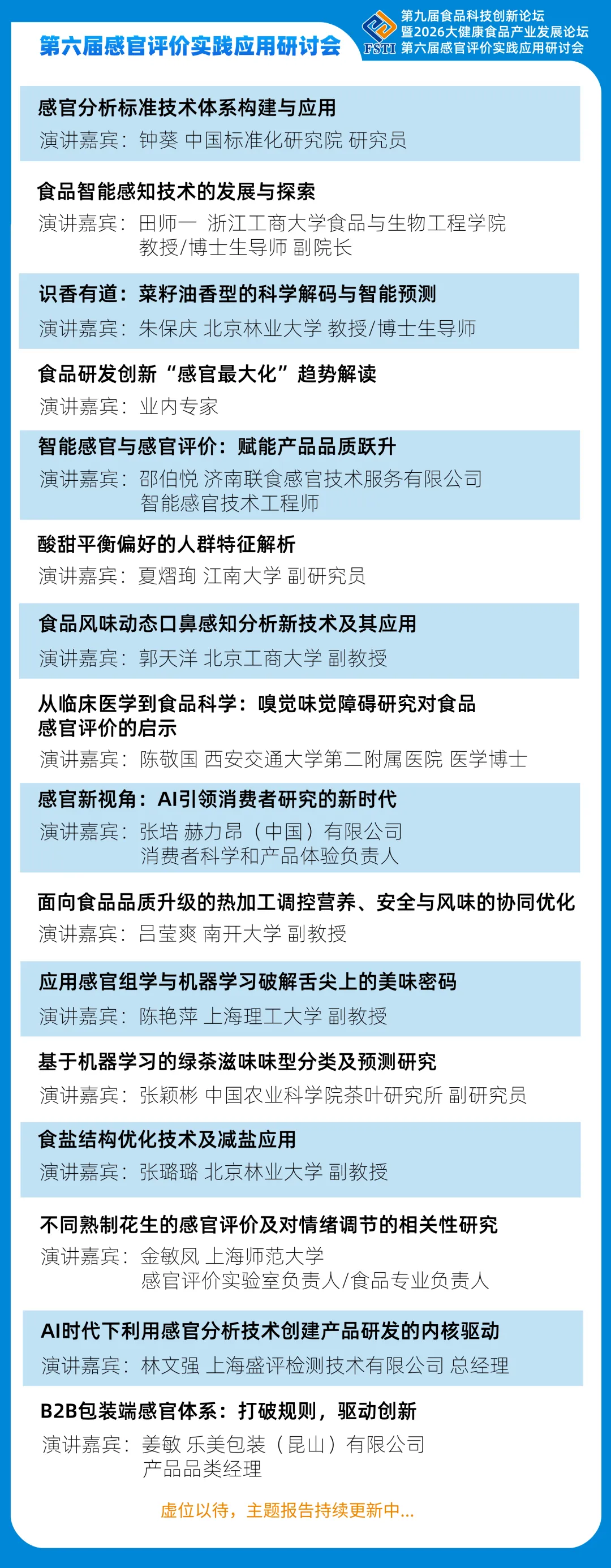 第五届感官评价实践应用研讨会演讲嘉宾(排名不分先后)