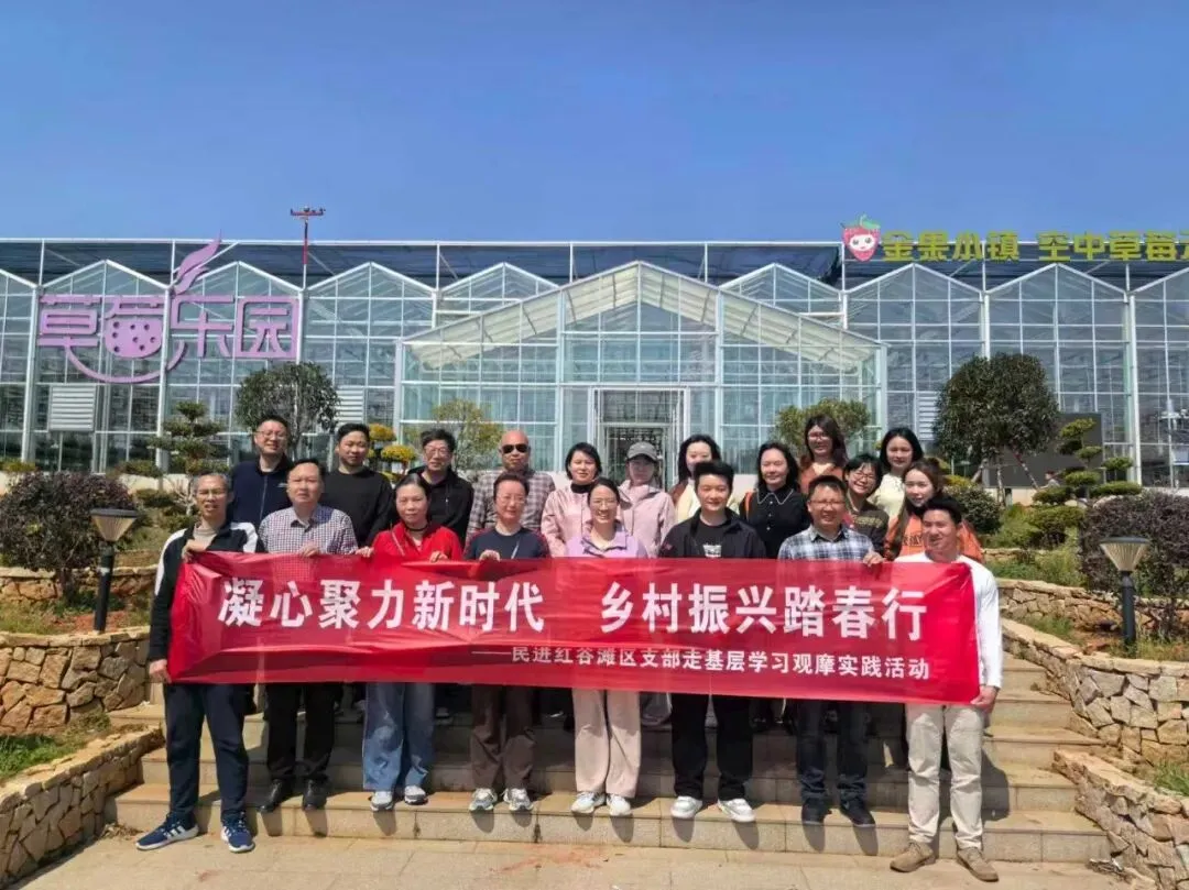 3月14日,春和景明,民进南昌市红谷滩区支部组织会员前往安义金果生态园基地,开展“凝心聚力新时代,乡村振兴踏春行”走基层学习观摩实践活动。活动旨在强化支部组织建设,增强会员履职尽责意识,切身感受乡村振兴发展成效,为参政议政、反映社情民意积累实践素材。