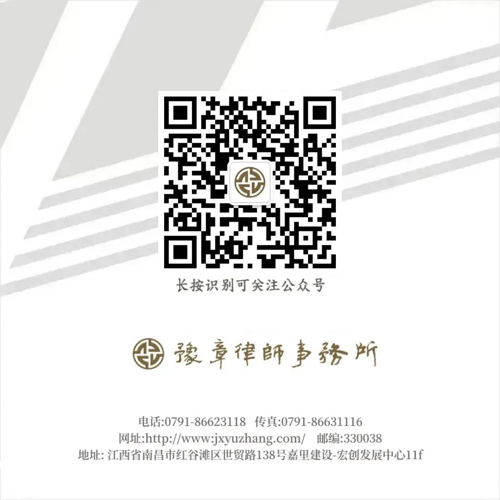 本平台推送的所有原创、转载文章仅供读者学习和交流,不代表本所的专业法律意见,若需要专业法律咨询或分析,请直接与江西豫章律师事务所联系。文章、图片等版权归原作者享有。转载本号原创文章请备注作者以及出处。责编微信:GZC20250111。