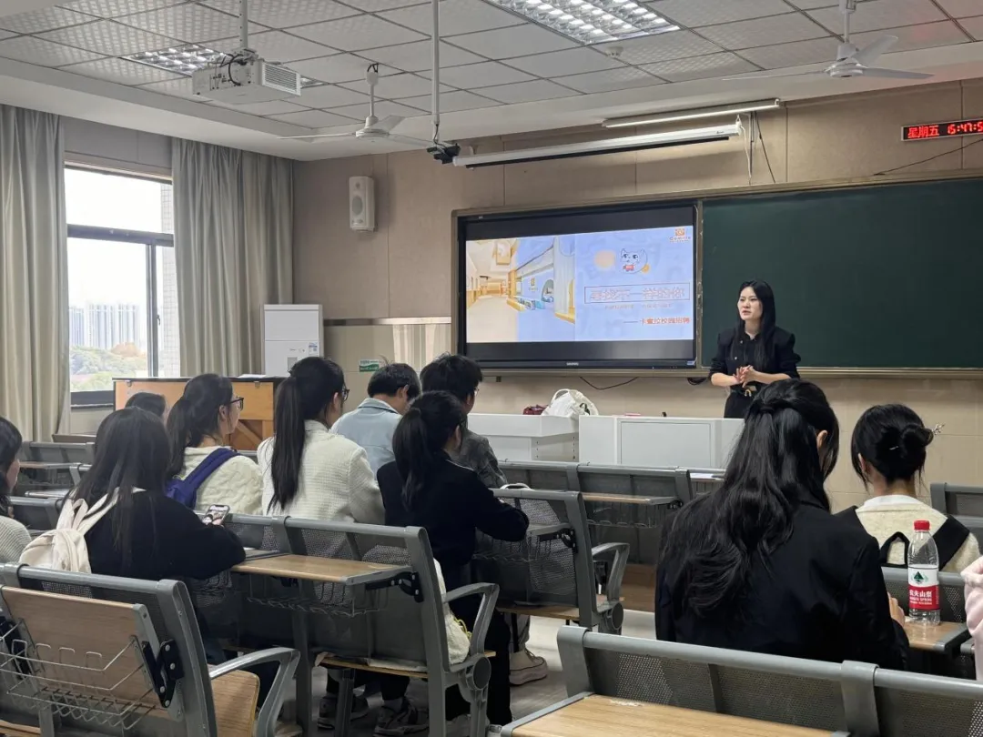 会上,南昌市卡米拉保育园黄园长精心准备了宣传资料,向毕业生们详细介绍了园所的环境设施、教育理念、发展前景、岗位需求等基本情况,并耐心解答了毕业生们关注的发展机会、食宿薪资、工作分配等问题。怀揣着对幼儿教育事业的热忱,毕业生们认真倾听,积极互动交流,现场气氛热烈而有序,展现出毕业生们对未来投身幼教邻域的无限憧憬与期待。