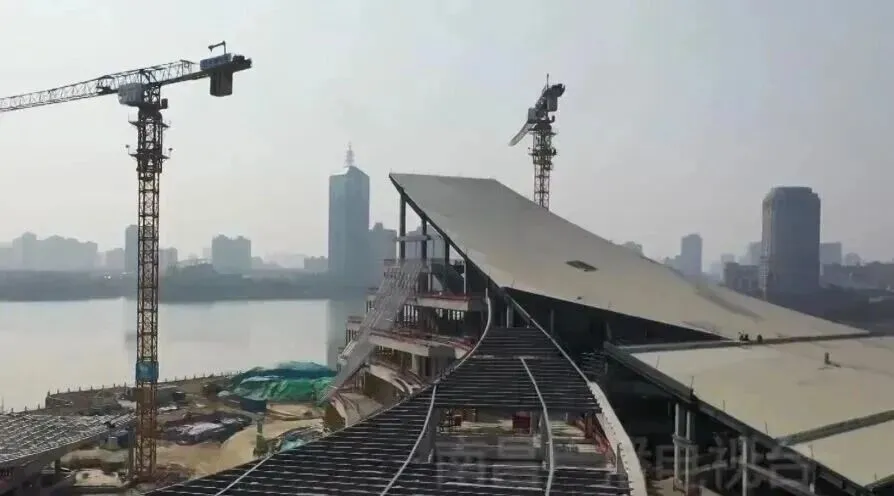目前南昌市图书馆新馆已经全面进入了金属屋面、外立面装饰、机电安装施工阶段。