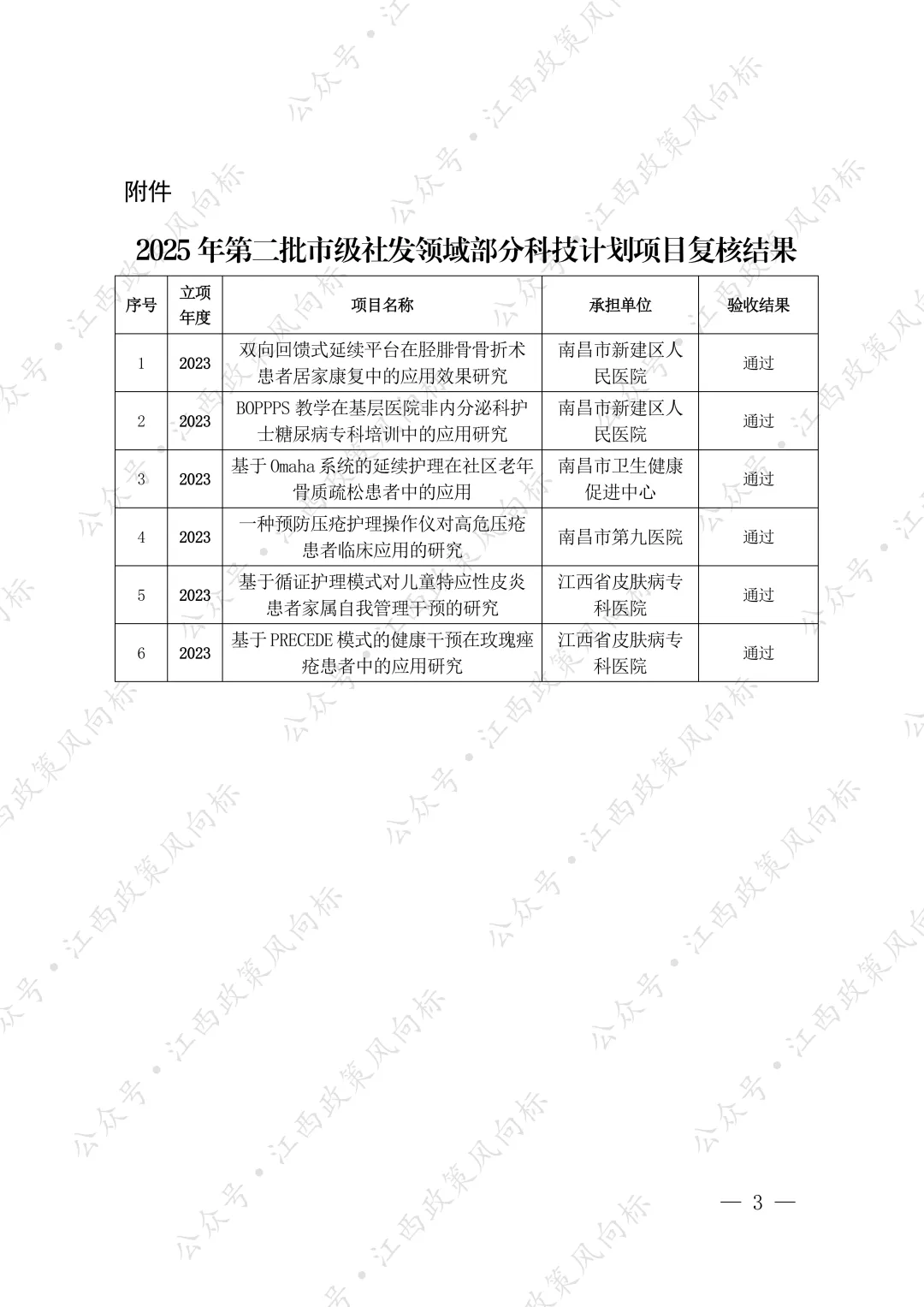 附件:关于南昌市2025年第二批市级社发领域部分科技计划项目复核结果的公示.pdf
