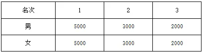 (一)半程马拉松项目,取男、女前三名进行奖励,取枪声成绩,税前奖金如下表(单位:人民币)