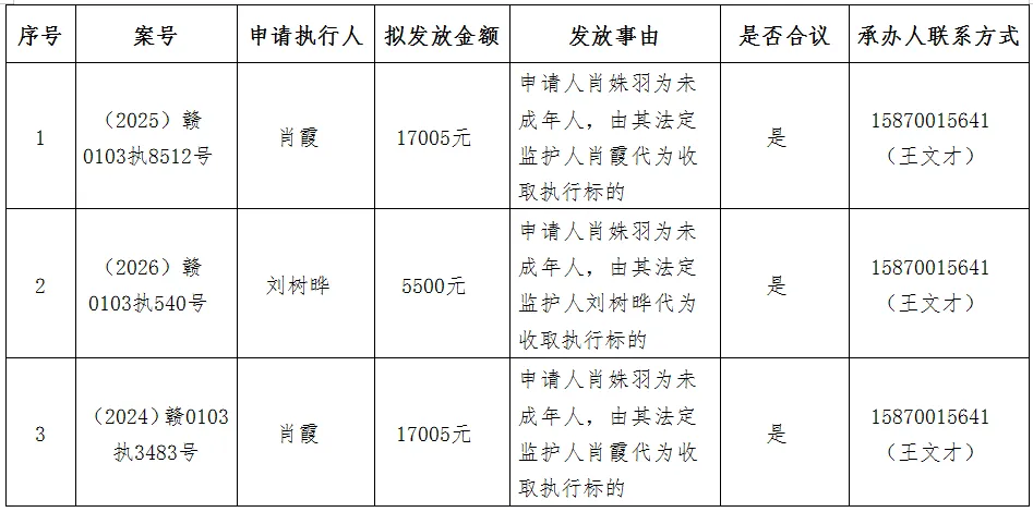 南昌市西湖区人民法院案款发放公示(2026年第四期)