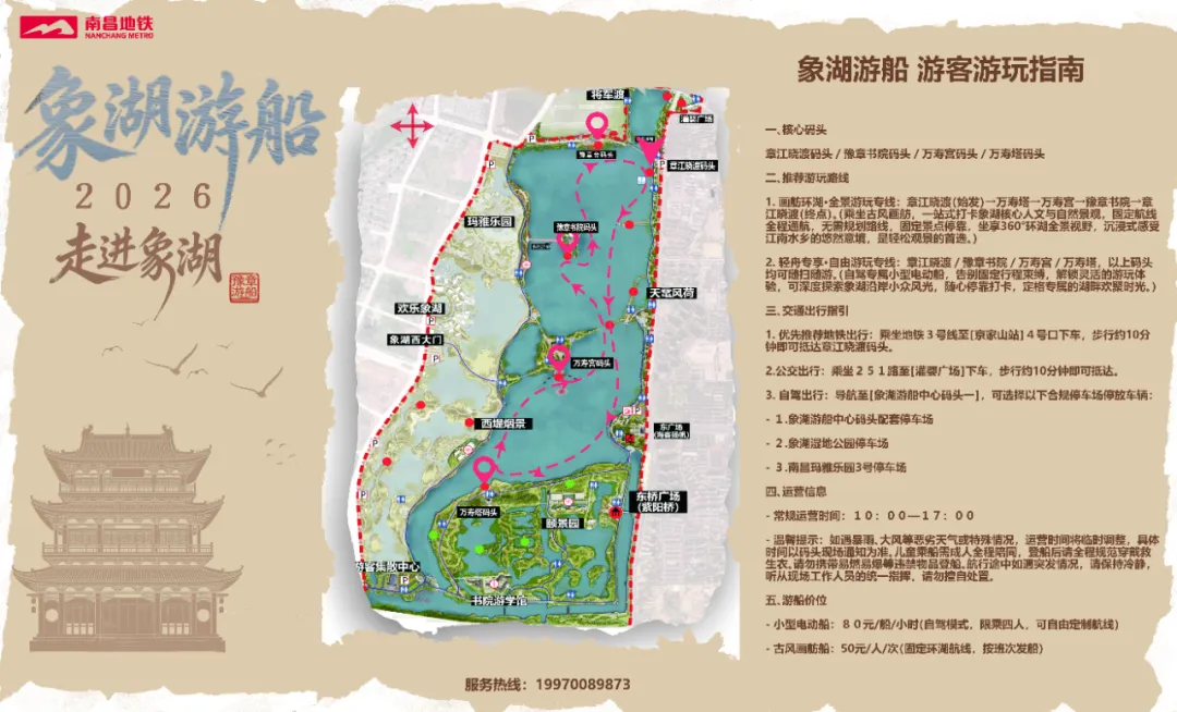 章江晓渡(始发)→万寿塔→万寿宫→豫章书院→章江晓渡(终点)