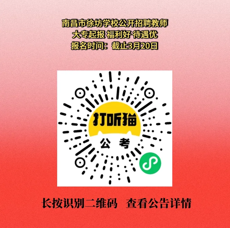>【南昌招聘】大专起报!南昌市徐坊学校公开招聘教师!
