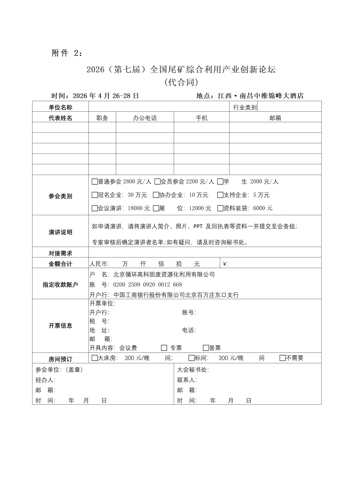 2、“2026(第七届)全国尾矿综合利用产业创新论坛”参会回执