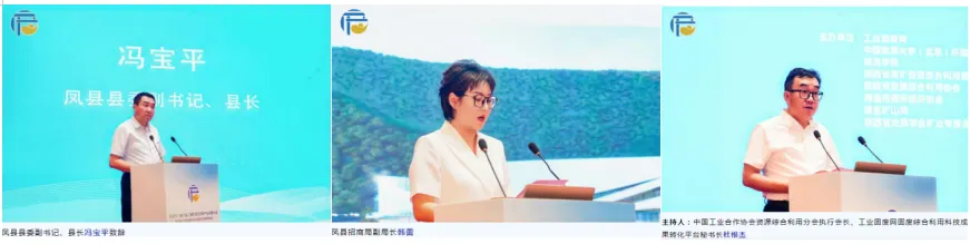 大会同期举办了“宝鸡市凤县工业固废综合利用项目招商对接会”。会议由凤县县委常委、副县长史晓辉主持,凤县人大常委会主任王勇、凤县政协副主席王保利、凤县发改局、凤县商工局、凤县自然资源局、凤县生态环境局、凤县应急管理局、凤县招商局、凤县工业园区管委会等主管领导出席会议,中国工业合作协会资源综合利用分会执行会长、工业固废网创始人杜根杰、西安工业大学、西安建筑科技大学、北京农学院、昆明理工大学、北京科技大学、中国五矿、中国地质科学院、宝鸡西北有色二里河矿业、陕西凤县四方金矿、陕西庞家河金矿、陕西铅硐山矿业等高校及企业代表共计50 余人参加专场会。