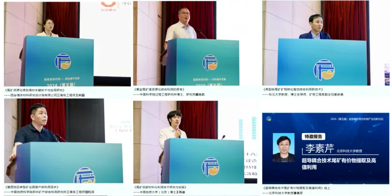 2024(第五届)全国尾矿综合利用产业创新论坛,以“固废高效利用--绿色循环发展”为主题,旨在推进黄河流域工业资源综合利用基地与“无废城市”建设,推动尾矿资源综合利用新工艺、新技术和新装备的示范与应用,加快(黄金、铅锌、钼、铁、铜、钒钛等金属尾矿以及石墨、石材、石英等非金属)尾矿规模化、高值化利用,实现矿产业绿色低碳循环发展。自然资源部矿产资源保护监督司原司长鞠建华,生态环境部固体废物与化学品管理技术中心、重金属管理技术部高级工程师韩伟分别围绕“尾矿综合利用潜力评估与政策导向”与“无废城市建设背景下,尾矿污染环境防治管理要求”做了主题演讲。来自东北大学、北京科技大学、中国地质大学(北京)、南京理工大学、中国农业大学、华南师范大学等单位的专家学者,以及企业代表、投资机构负责人共200余人参加本次会议。