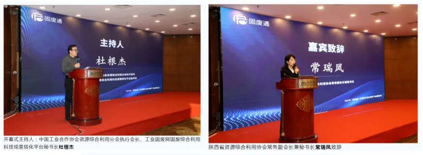 大会开幕式由中国工业合作协会资源综合利用分会执行会长、工业固废网固废综合利用科技成果转化平台秘书长杜根杰主持,陕西省资源综合利用协会常务副会长兼秘书长常瑞凤代表主办单位致欢迎辞。