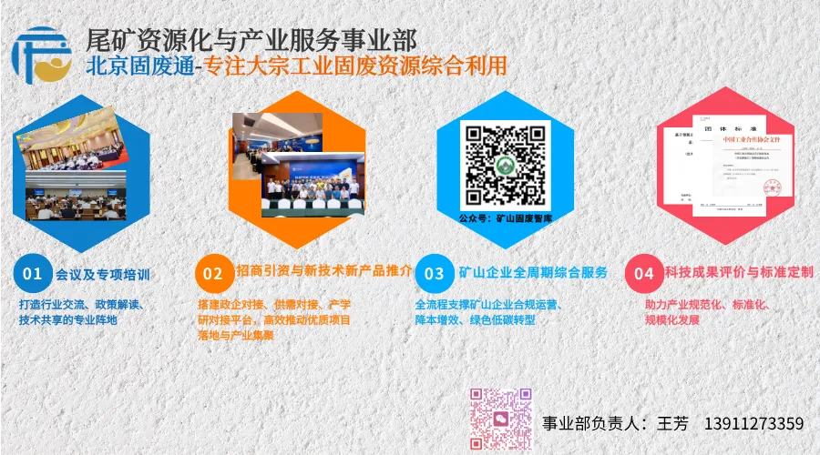 尾矿资源化与产业服务事业部:专注尾矿综合利用与矿山绿色低碳发展,以全链条产业服务为核心,整合行业资源、技术、政策与市场,构建会议培训、招商对接、全周期技术服务、成果评价及标准建设一体化服务体系,打通尾矿 “处置 — 利用 — 增值” 闭环,助力资源型城市产业升级、矿山企业降本增效与行业高质量绿色转型。