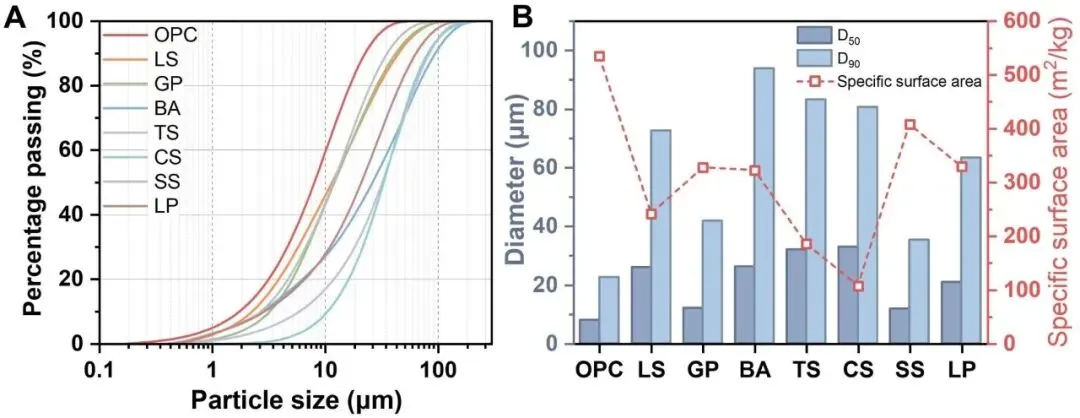 ①核心原料:普通硅酸盐水泥、硅灰;7 种工业固废(锂渣 LS、玻璃粉 GP、底灰 BA、钨渣 TS、铜渣 CS、钢渣 SS、石灰石粉 LP)