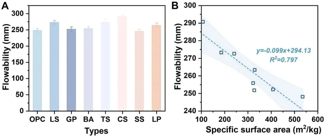 UHPC 浆料含有不同固体废物的流动性及其与比表面积的相关性