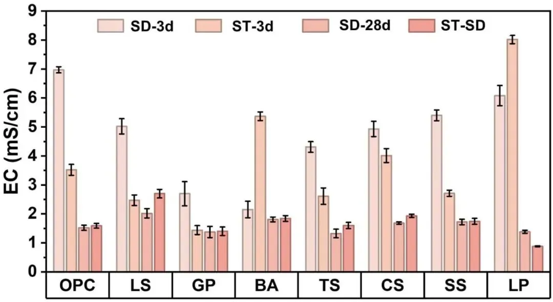 4、固废与养护存在明确适配关系:蒸汽活化具有双重效应,既能提升反应效率,也可能诱发结构失衡。其中钢渣、铜渣与蒸汽养护匹配性最佳;锂渣经蒸汽养护后易出现强度倒缩;玻璃粉、钨渣更适配蒸汽 - 标准复合养护制度;
