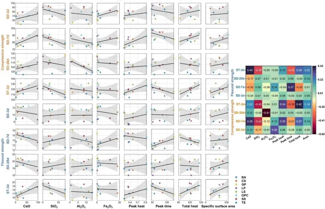 标准和蒸汽辅助固化条件下,材料特性、水合热参数与强度发展之间的耦合相关性