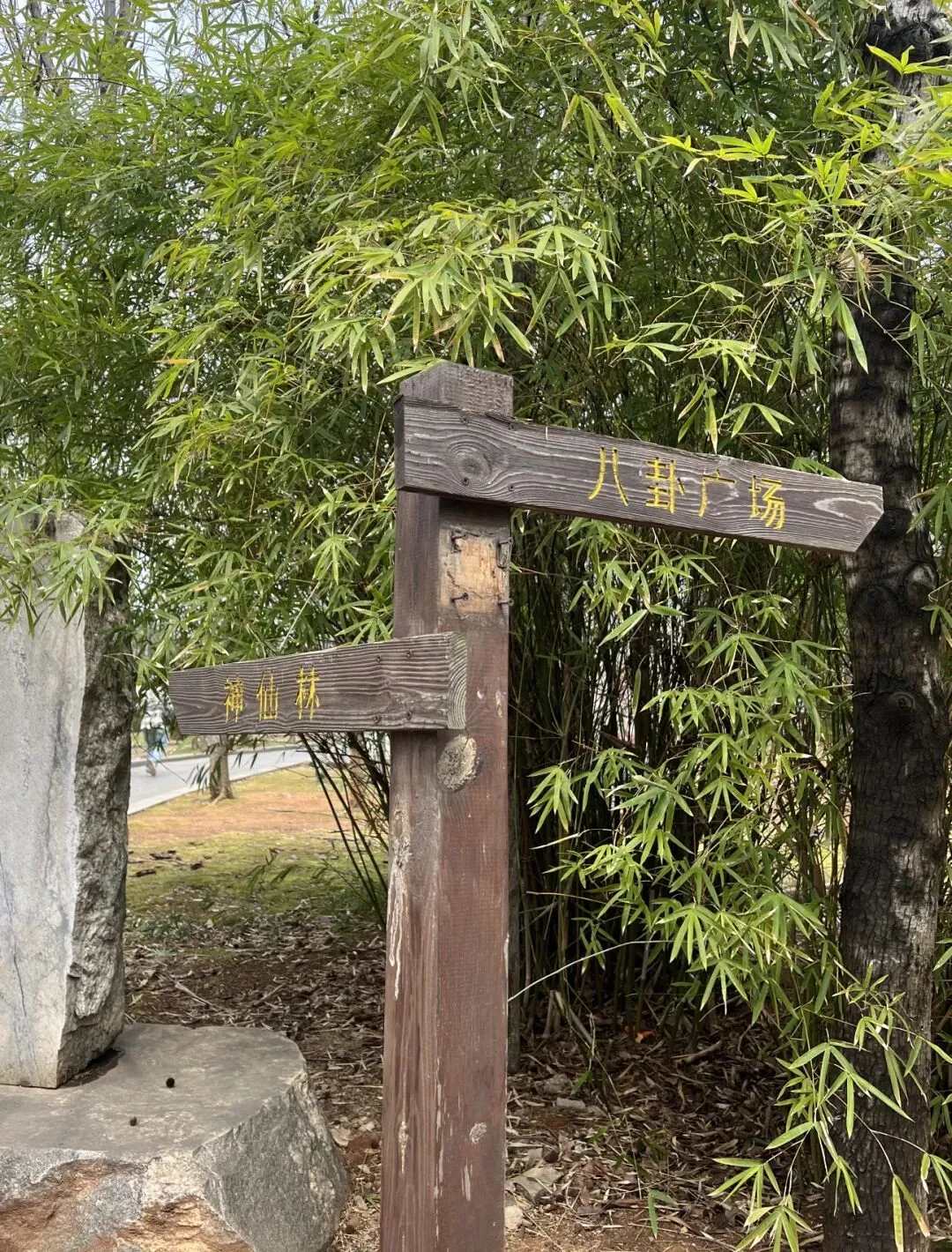 就在八卦广场的左手边,有一片神仙林,