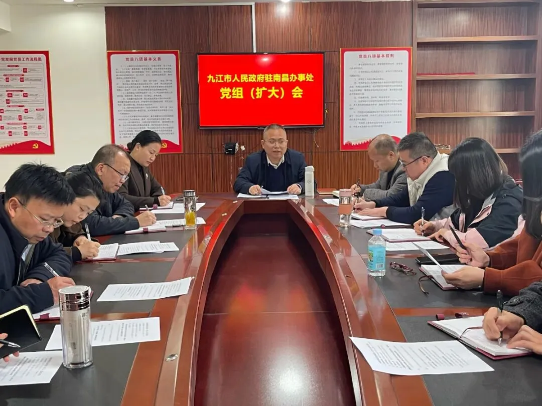 12月17日,九江市政府驻南昌办事处召开党组(扩大)会,专题传达学习中共九江市委十二届十九次全体会议精神,研究部署贯彻落实具体举措。办事处党组书记、主任黎咏华主持会议并讲话,全体干部职工参会。