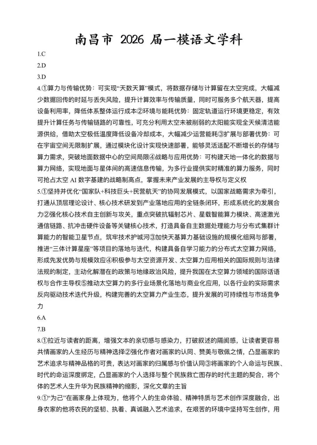 考试名称:南昌一模2026届南昌市高三年级三月测试