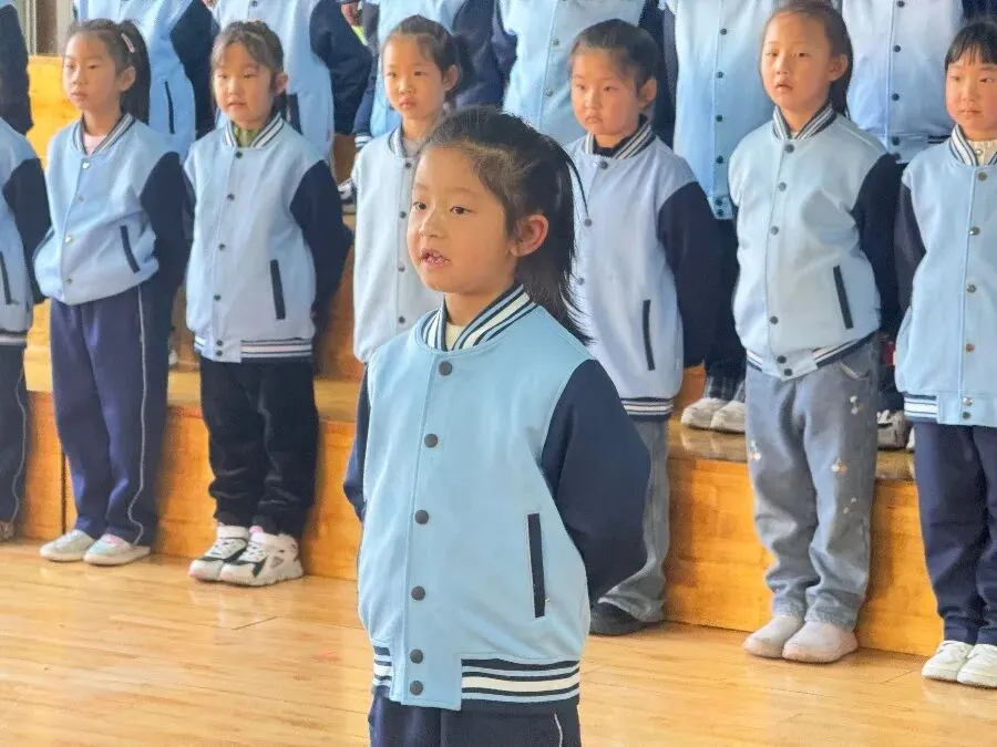比赛现场,各班同学精神抖擞,队列整齐。中华人民共和国国歌作为必唱曲目,在每个班级的演绎下都格外庄重深情——孩子们挺直的小身板、稚嫩而有力的声音,让爱国情怀在歌声中悄然生长。自选曲目选自现行音乐教材,既有《祖国祖国我们爱你》《清晨》这样活泼欢快的歌曲,也有《雨花石》《妈妈格桑拉》等温婉动人的经典。孩子们用最自然的状态纯粹地歌唱,享受属于他们的音乐时光。