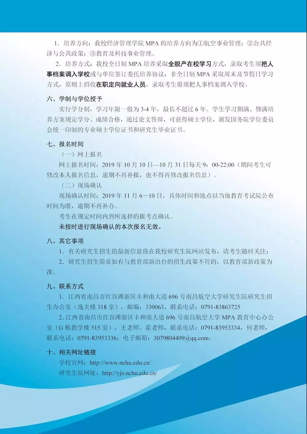 2.江西省南昌市红谷滩新区丰和南大道696号南昌航空大学MPA教育中心办公室(G栋教学楼515室),王老师、霍老师,联系电话:0791-83953334,何老师,联系电话:0791-83953336;电子邮箱:3079804409@qq.com。