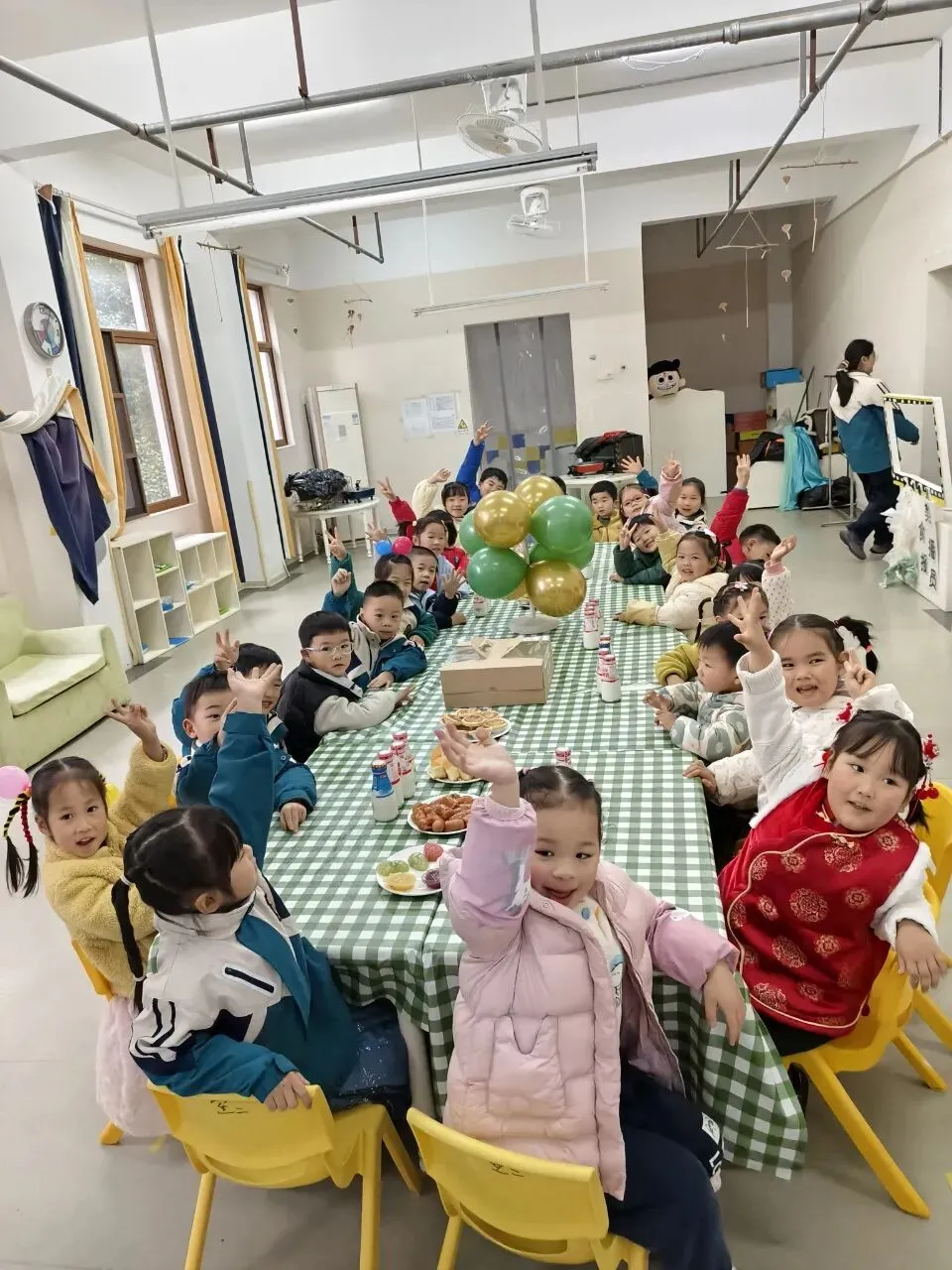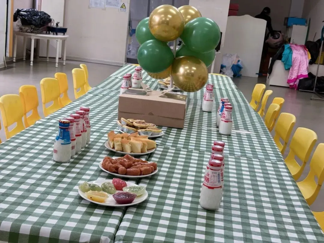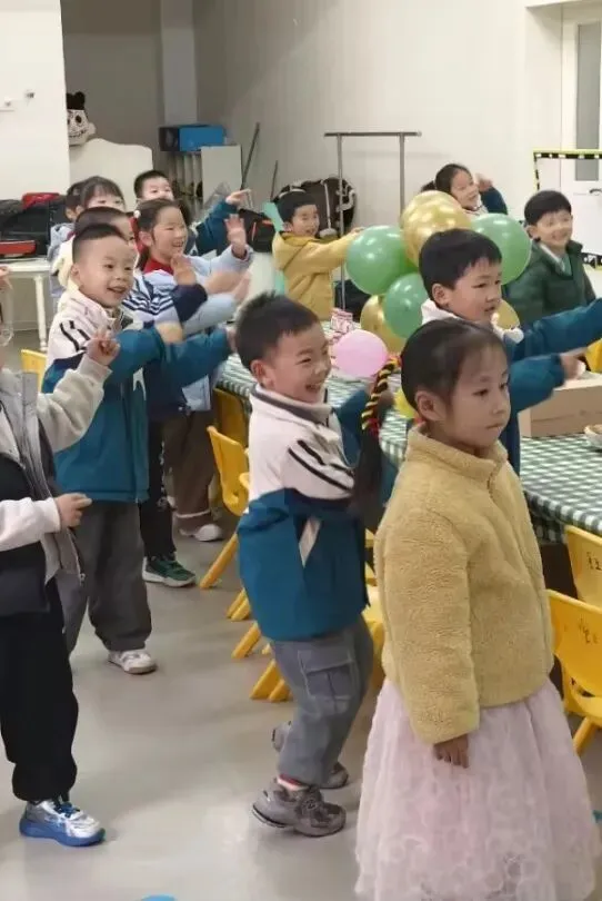 生日会现场,五彩的气球、漂亮的彩带、温馨的背景板……每一处细节都透露着老师们的用心。随着欢快的音乐响起,欢乐派对正式拉开帷幕!