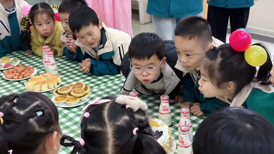 “祝你生日快乐,祝你生日快乐……”当生日歌缓缓响起,老师们推着精美的生日蛋糕缓缓走来。蛋糕上插着彩色蜡烛,烛光摇曳,映照着孩子们兴奋的脸庞。