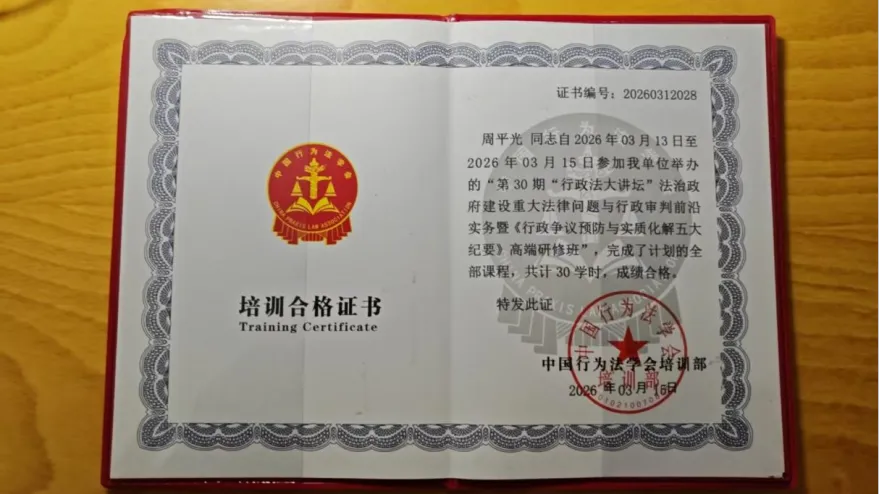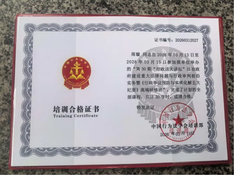 为进一步提升公职律师专业素养,强化法治政府建设人才支撑,近日,南昌县司法局选派周璇、周平光两名同志,赴合肥参加了由中国行为法学会举办的“法治政府建设重大法律问题与行政审判前沿实务暨《行政争议预防与实质化解五大纪要》”高端研修班。