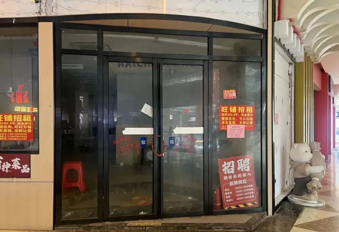 近日有媒体走进梦时代现场直击:一二楼大量商铺关闭,店铺门口张贴着旺铺招租。