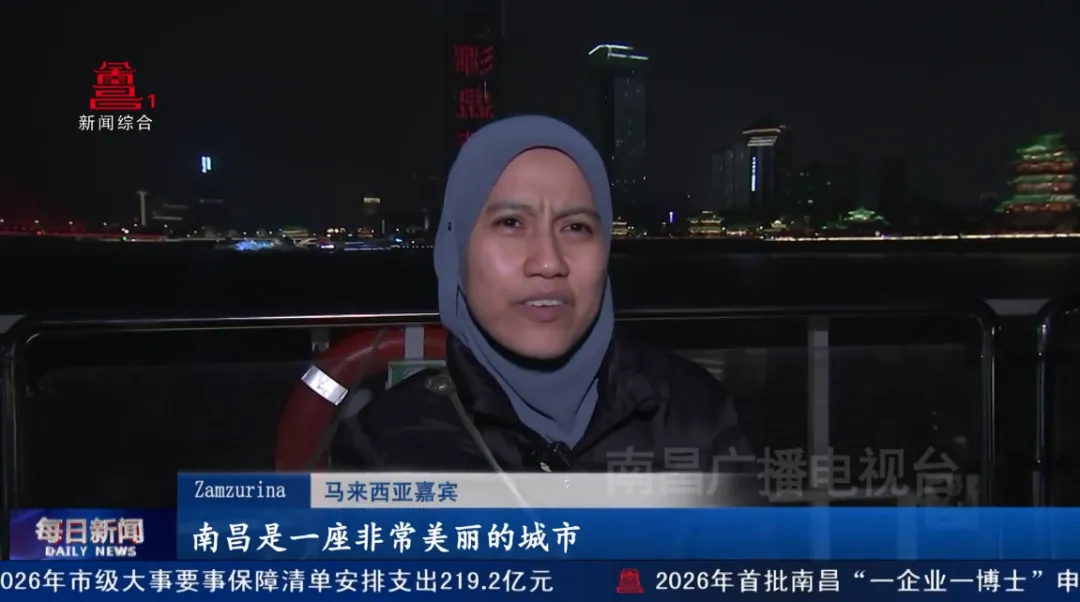 马来西亚嘉宾Zamzurina:“南昌是一座非常美丽的城市,而且当地人也非常友好,我对这座城市的第一印象非常美好,夜晚的赣江景色尤其迷人,灯光璀璨,令人赞叹。我在南昌尝试了一种面条,味道非常美味,这种美食体验让我对南昌的印象更加深刻,也让我对中国的饮食文化产生了浓厚的兴趣。”
