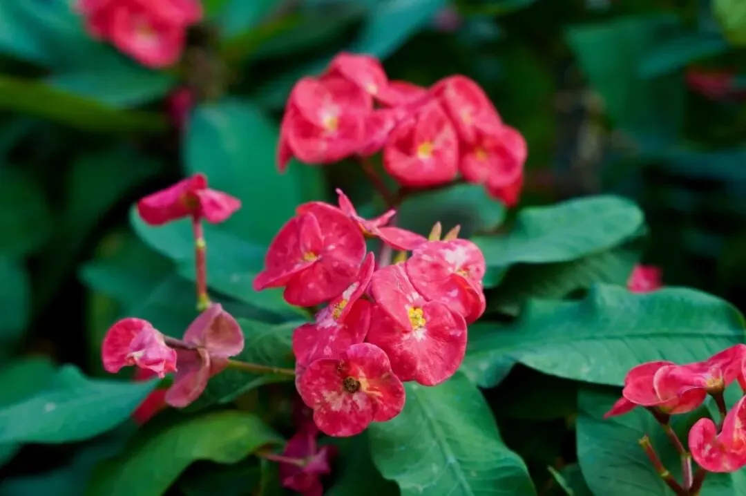 鲜红的苞片如花瓣般艳丽茎干上却密布尖刺,守护着那份娇艳