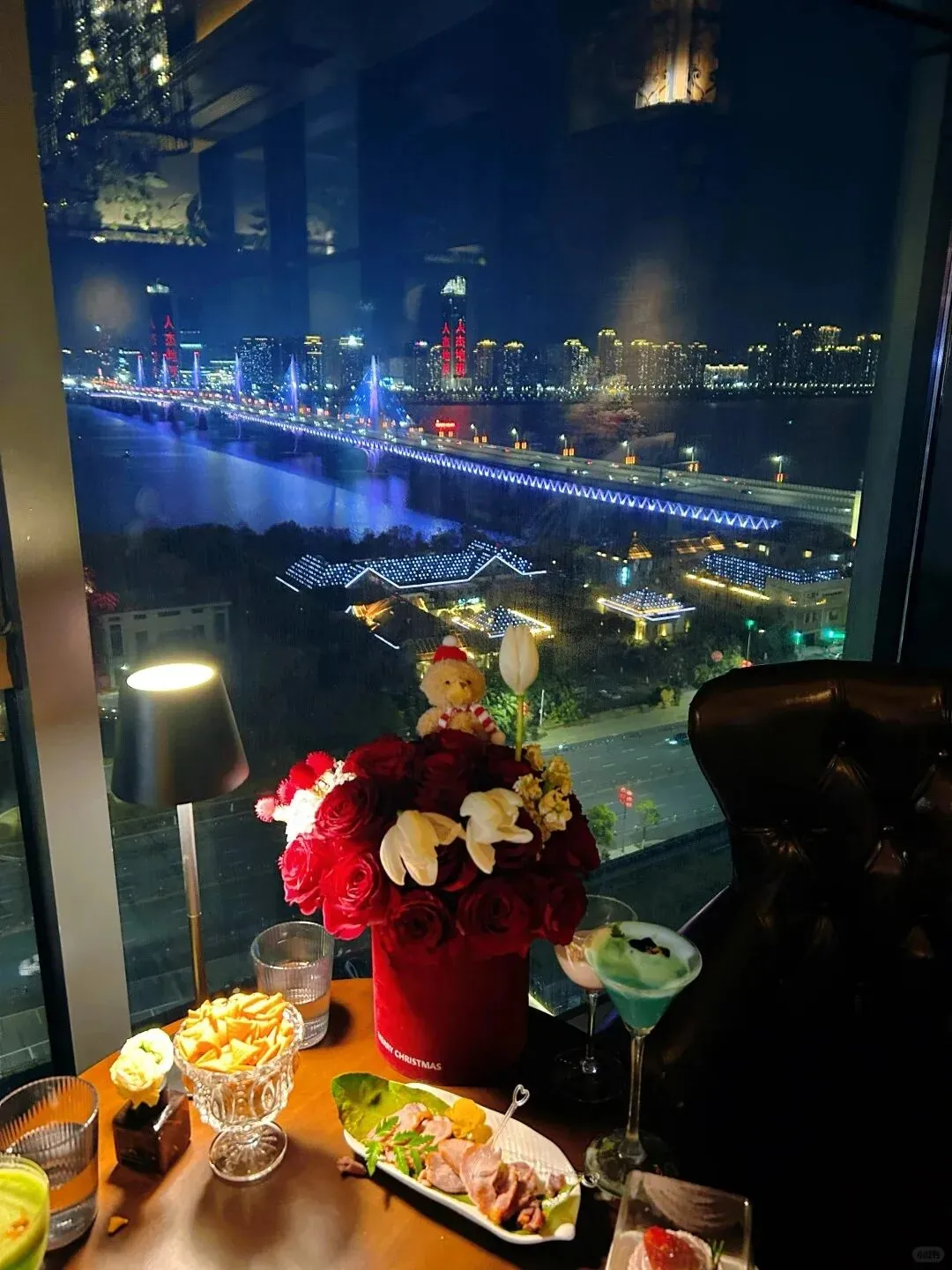 周末人还挺多的想坐窗边的话记得早点去那种抬眼就是璀璨夜景的感觉谁去了谁知道